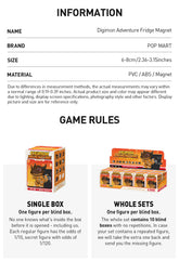 Bring your favorite digital monsters into the real world with the Digimon Adventure Fridge Magnet Series Figures! Each blind box contains a surprise Digimon character crafted in a mini figure style and fitted with a strong magnet on the back. Perfect for decorating your fridge, whiteboard, or any magnetic surface, these figures combine both fun and functionality.